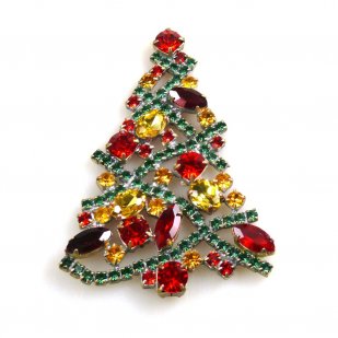 Xmas wonderful tree brooch, made from glamorous Czech rhinestones, size 7.0 cm (2.75")